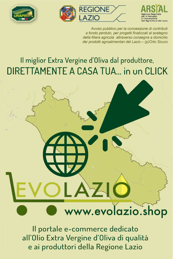 E’ un progetto che ha l’obiettivo di creare, attraverso il web, un network-vetrina dedicato ai produttori di olio extra vergine d’oliva di qualità DELLA REGIONE LAZIO, coordinato dal Consorzio Unaprol attraverso il portale principale www.evolazio.shop.
