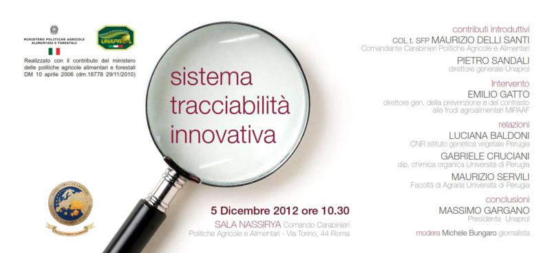 Un aspetto strategico che accomuna le produzioni dell’intero comparto agroalimentare Italiano è la necessità di difendere la propria identità.Questo aspetto riguarda anche e soprattutto gli oli extravergini di oliva Italiani di alta qualità che sono ampiamente soggetti a contraffazione in Italia e all’estero. Unaprol con la collaborazione di rinomate università italiane ha sviluppato un sistema innovativo di tracciabilità che sarà presentato nel corso di un evento il cui programma è sotto riportato. L’iniziativa si svolgerà mercoledì 5 dicembre, alle ore 10,30 presso la sala Nassirya del Comando Carabinieri Politiche Agricole in Via Torino 44 a Roma.