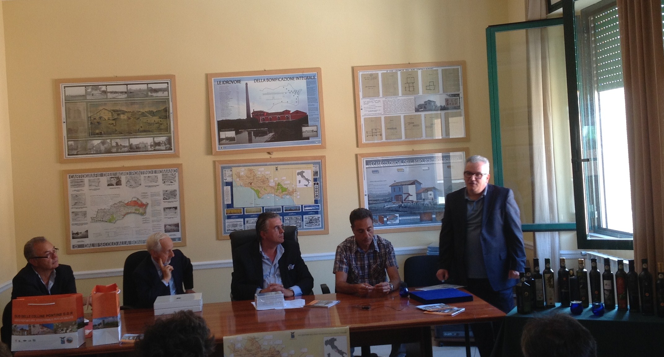 Nella foto un momento dell’incontro con i giornalisti. Da sinistra: Domenico Tibaldi (Dirigente del settore provinciale attività produttive servizio agricoltura); dott. Alessandro Rossi (Presidente LILT di Latina); Renzo Scalco (assessore provinciale all’agricoltura); prof. Eugenio Lendaro (Università La Sapienza di Roma – Polo di Latina); Luigi Centauri (Presidente Capol – Centro Assaggiatori Produzioni Olivicole di Latina). I contatti con la stampa sono stati curati dalla collega Tiziana Briguglio direttore della testata agroalimeantare in rosa.