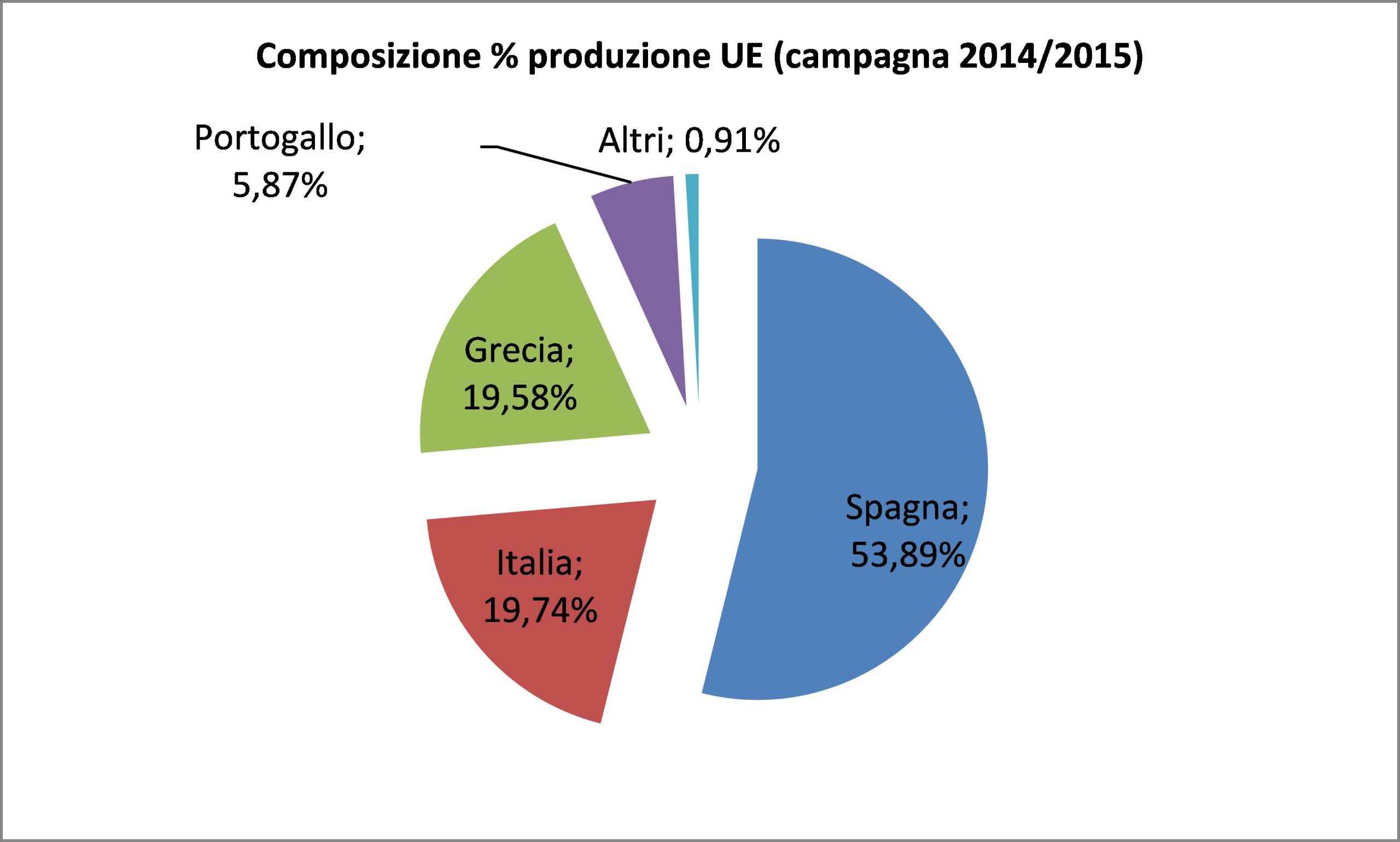 Nel 2014/15 produzione in calo. UE perde peso. Resto del mondo produce il 36% di tutto l’olio