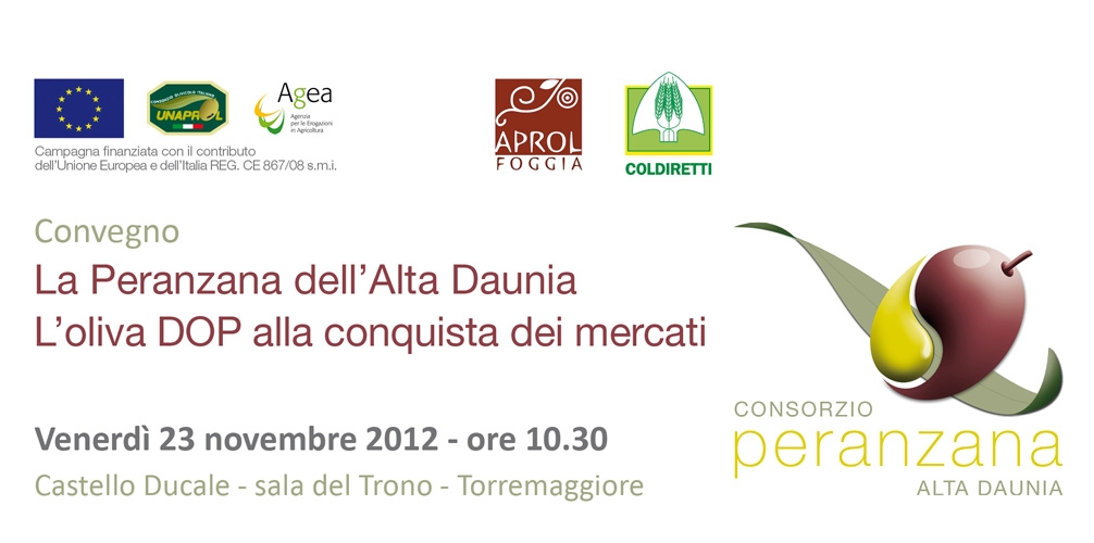 In Puglia, nell’Alta Daunia ed in particolare tra i Comuni di Torremaggiore, San Paolo Civitate e San Severo, vi sono oltre dieci mila ettari di oliveto della varietà “Peranzana”. Un’antica cultivar di origine francese che ha trovato l’America in Italia, visto il crescente gradimento di un pubblico di consumatori sempre più vasto. Della costituzione di un comitato che sostenga la procedura per il riconoscimento dell’oliva da tavola Dop “Alta Daunia”, si discuterà in un convegno che si svolgerà a Torremaggiore il prossimo 23 novembre.
