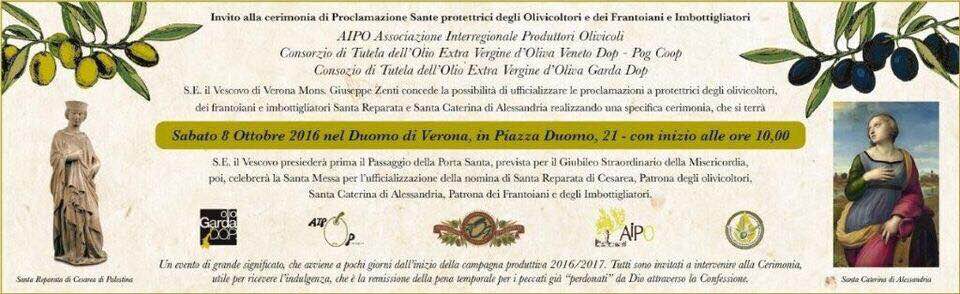 Il Vescovo di Verona, Mons. Giuseppe Zenti, nell’ambito delle iniziative programmate per il Giubileo della Misericordia, presiederà, nell’occasione la messa (ore 11,00) per l’ufficializzazione della proclamazione di Santa Reparata di Cesarea e di Santa Caterina di Alessandria, Patrone, rispettivamente, degli olivicoltori dei Frantoiani e degli Imbottigliatori.