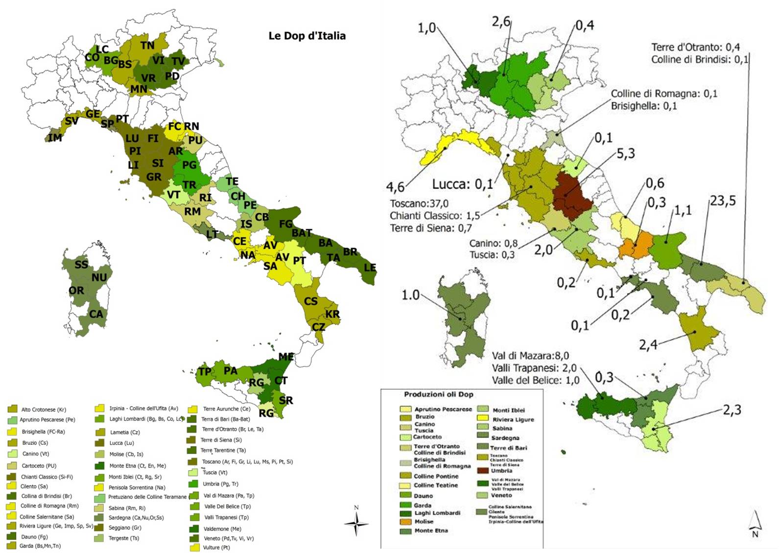 In Italia producono più sigle di Dop le province di Trapani e di Siena ma a questo primato locale e nazionale non corrisponde un forte livello di produzione certificata. Nel 2010, secondo i dati Ismea-Qualivita, analizzati dall’osservatorio economico di Unaprol la produzione certificata ha raggiunto circa le 10.500 tonnellate, evidenziando una sostanziale stabilità rispetto ai livelli raggiunti nel 2009 (+0,7%). La produzione certificata di oli Dop e Igp rappresenta il 2/3% circa della produzione totale di olio extravergine.