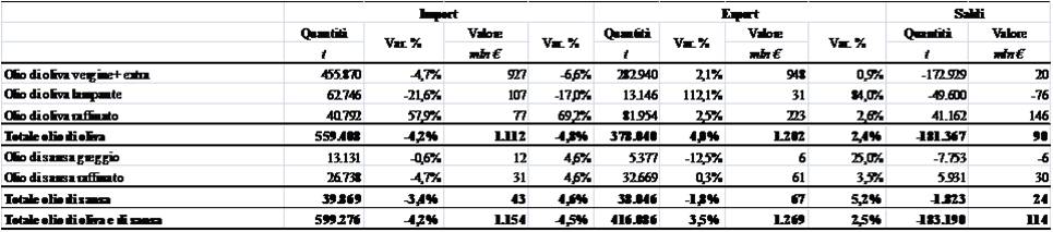 “E un buon segnale commenta Pietro Sandali direttore generale di Unaprol, che denota il dinamismo delle imprese italiane nel produrre prodotti di buona ed alta qualità. Questi dati sono anche una conferma – ha poi aggiunto – della validità dei programmi di promozione del consumo consapevole realizzati in tutto il mondo da Unione Europea, dall’Italia e da Unaprol”. Dall’analisi degli scambi, realizzata dall’osservatorio economico di Unaprol in occasione di Tuttofood di Milano, risulta che nel 2012 l’Italia ha acquistato dall’estero olio per circa 1 miliardo e 100 milioni di euro. I volumi importati hanno quasi raggiunto il livello di 600 mila tonnellate, ma hanno registrato una flessione del 4,2% attribuibile in misura maggiore al segmento degli oli d’oliva. Gli approvvigionamenti dalla Spagna hanno subito una contrazione del 12%, determinate prevalentemente dalla diminuzione della produzione spagnola.